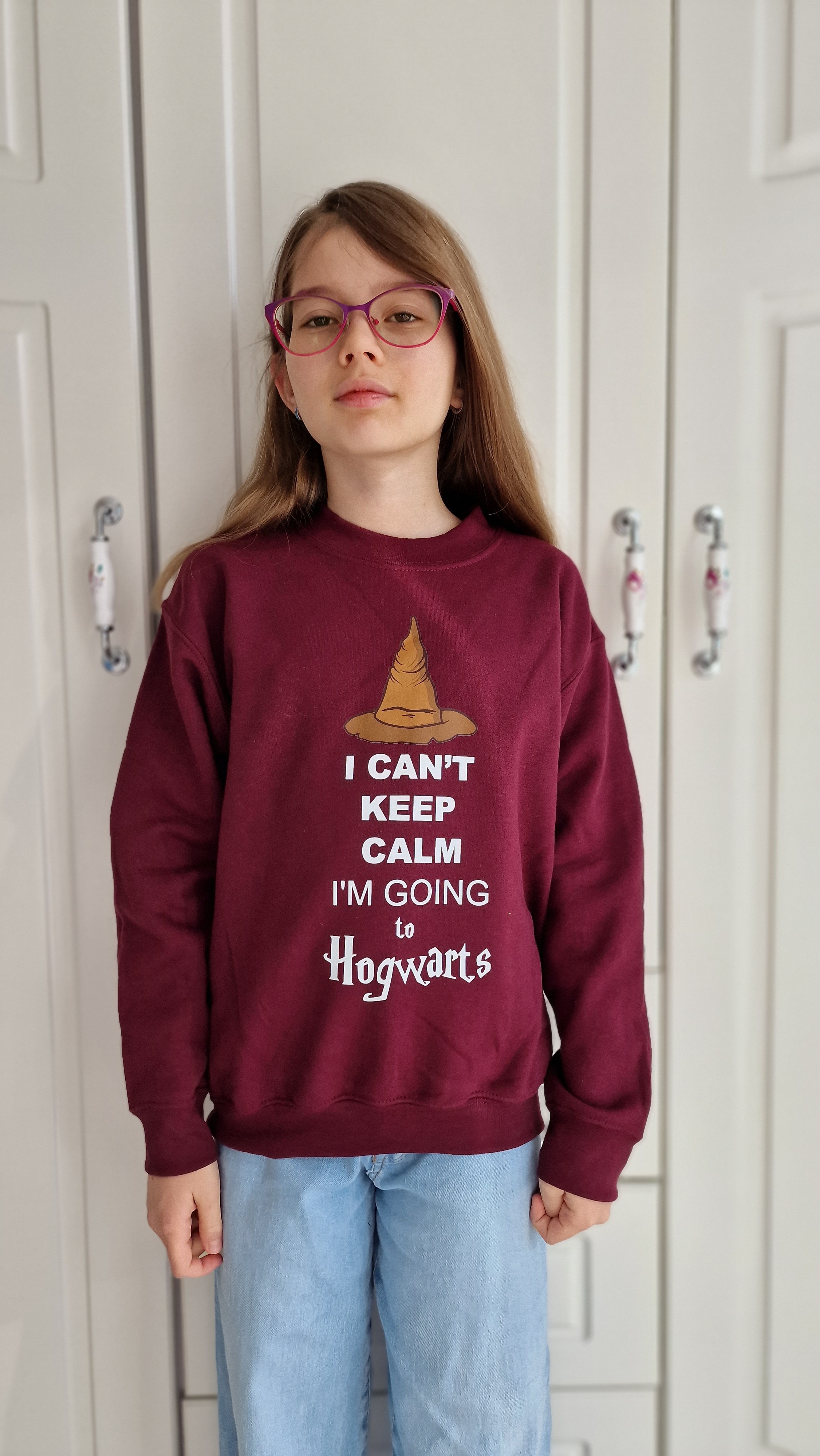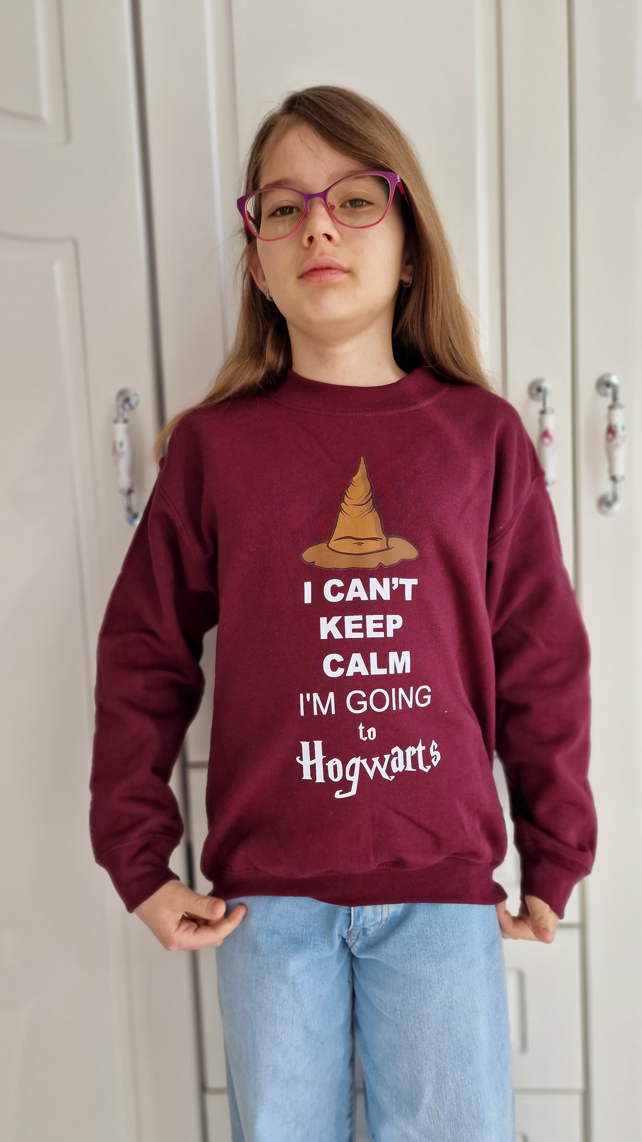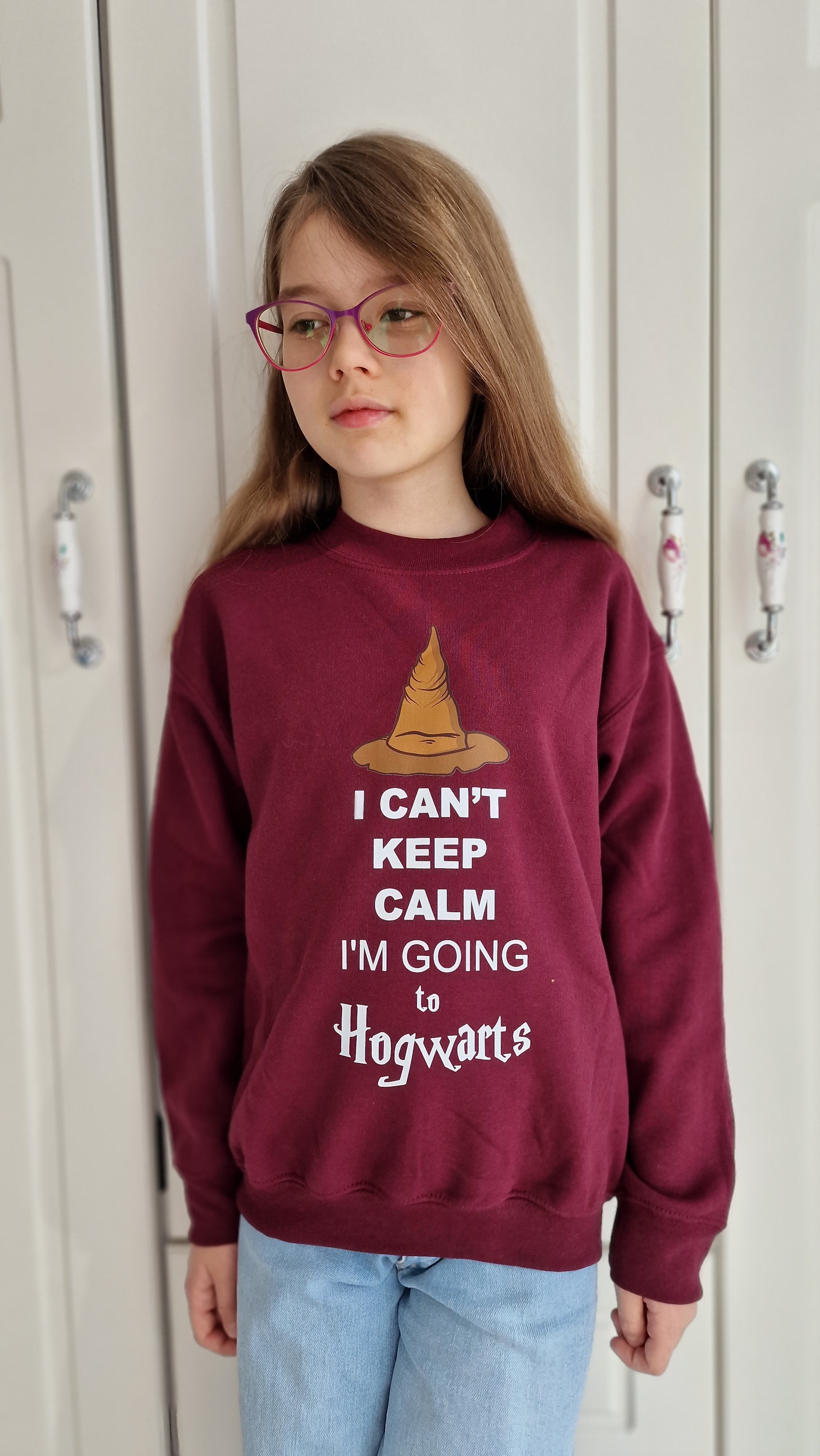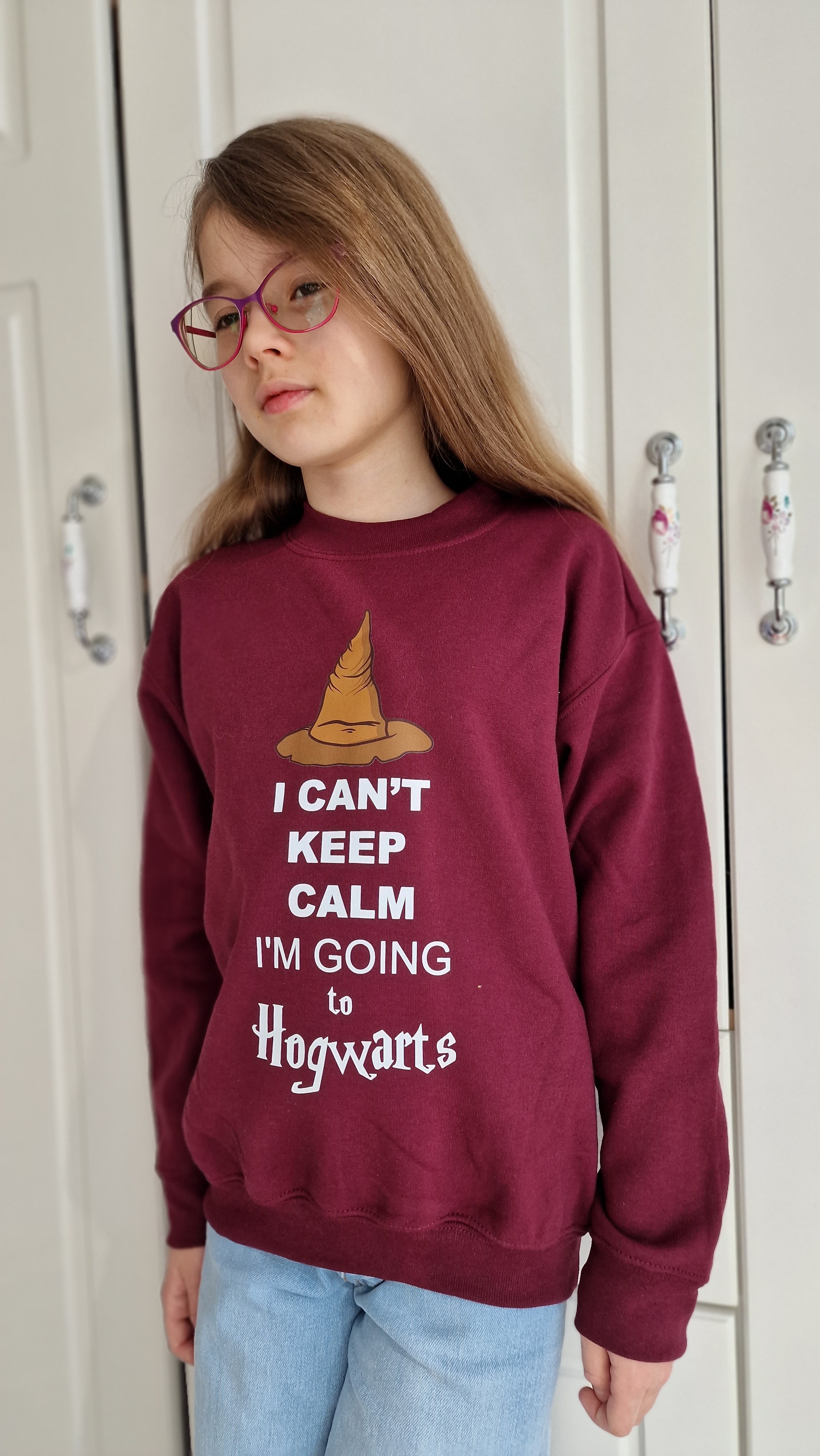 Sweatshirt children, burgundy "Keep Calm", clothing for Potter-head fans