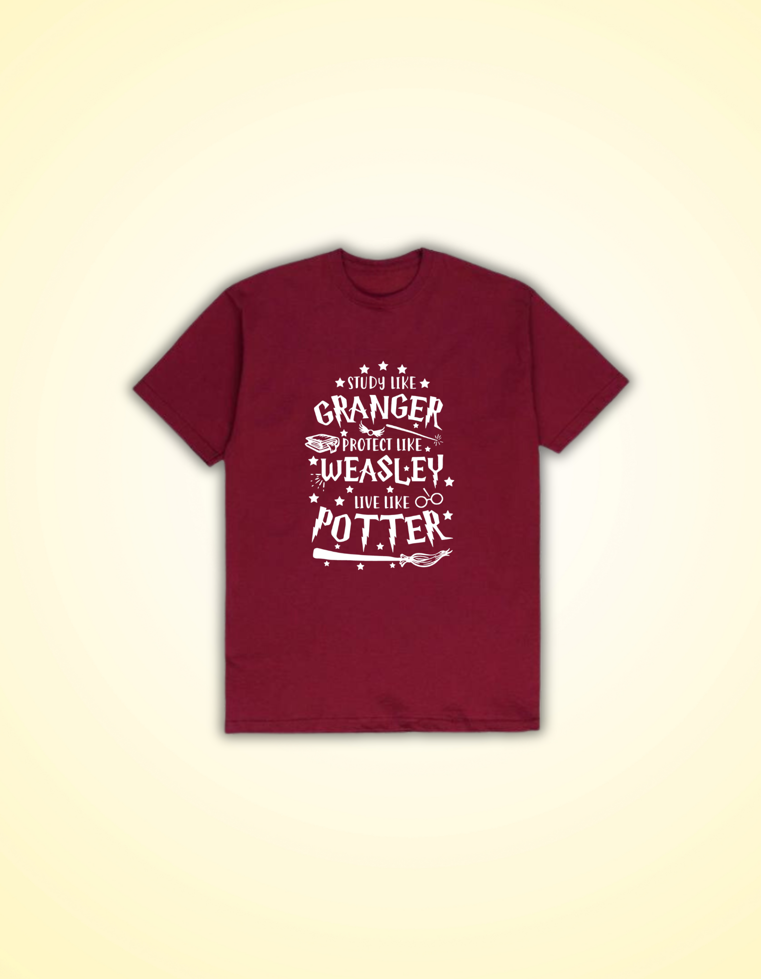 In the enchanting world of Potter, Hermione stands out as a beacon of intelligence, wisdom, and dedication to learning. Her exemplary work ethic and insatiable thirst for knowledge have inspired generations of fans to strive for academic excellence. Now, children can channel their inner Hermione with a charming burgundy t-shirt emblazoned with the motivating slogan "Study like Hermione."