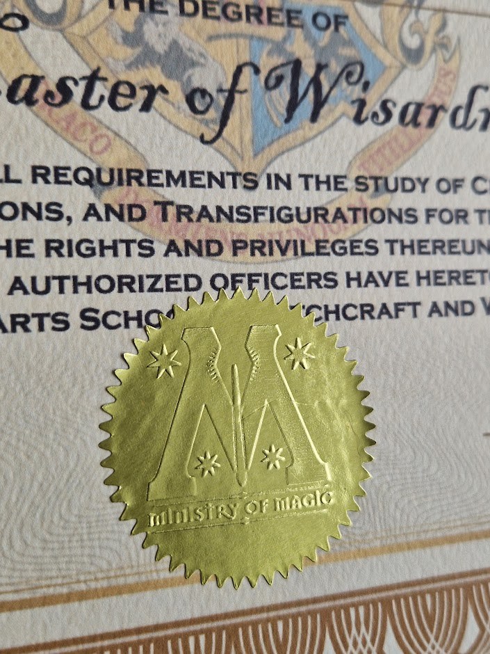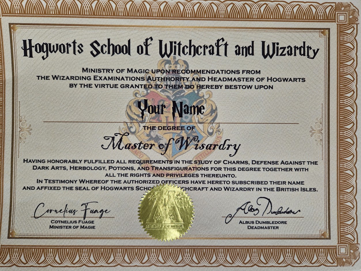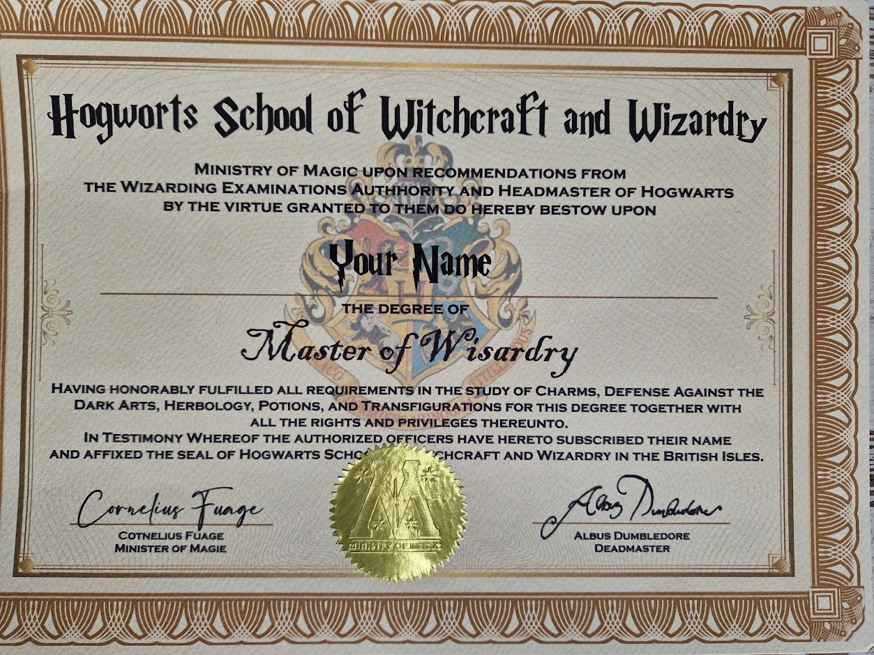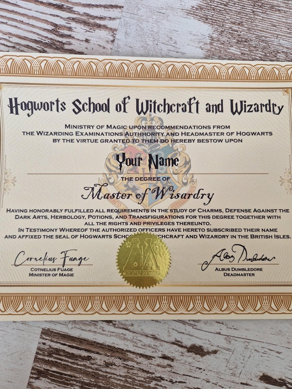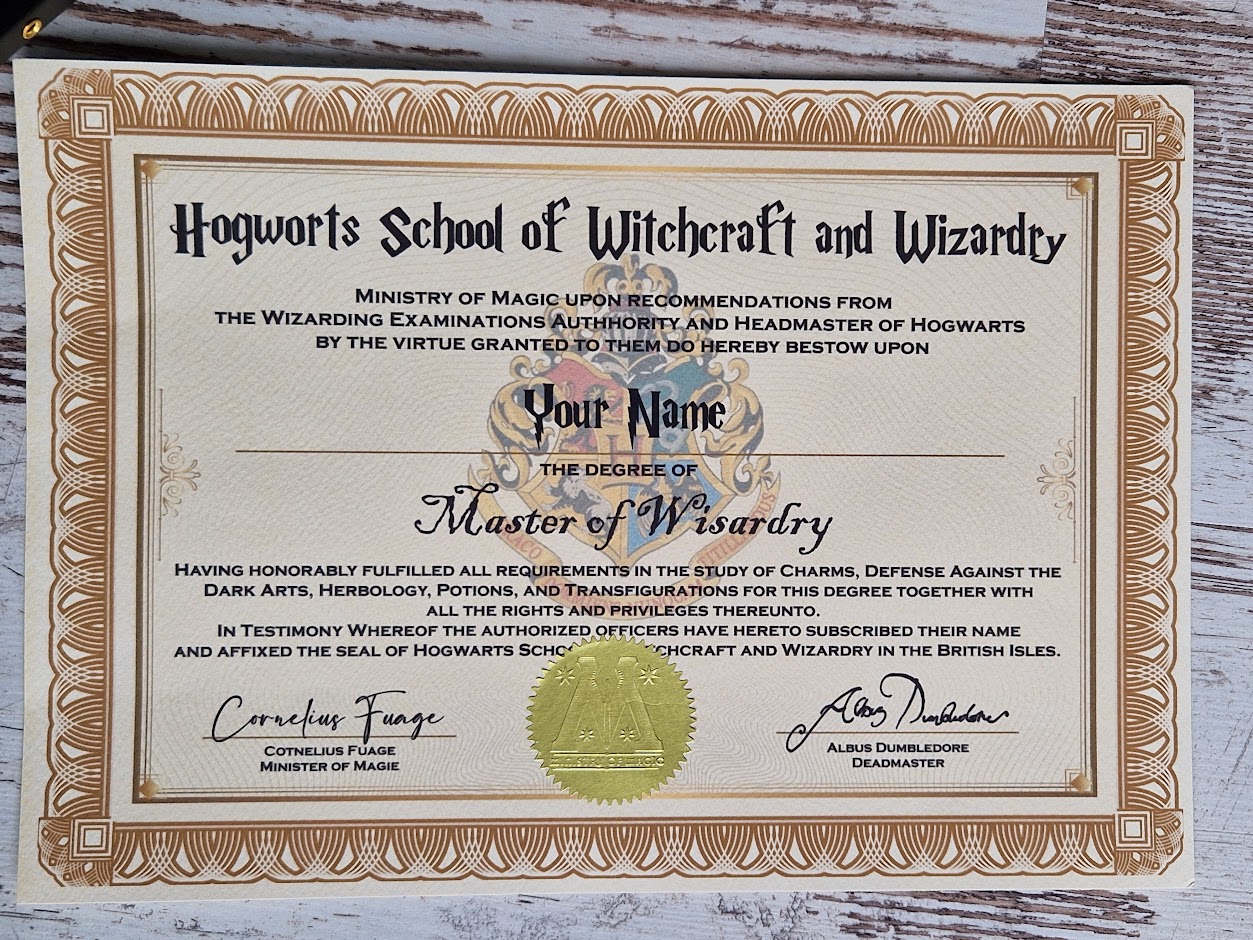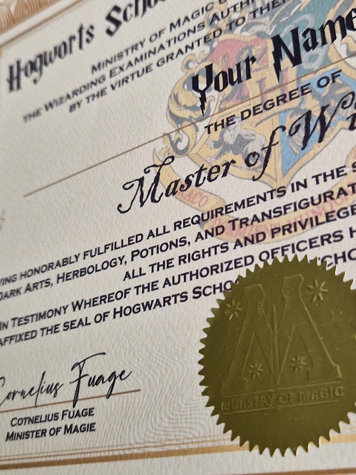 Printouts: Certificate of graduation from a Wizard's School - for Potter-head fans