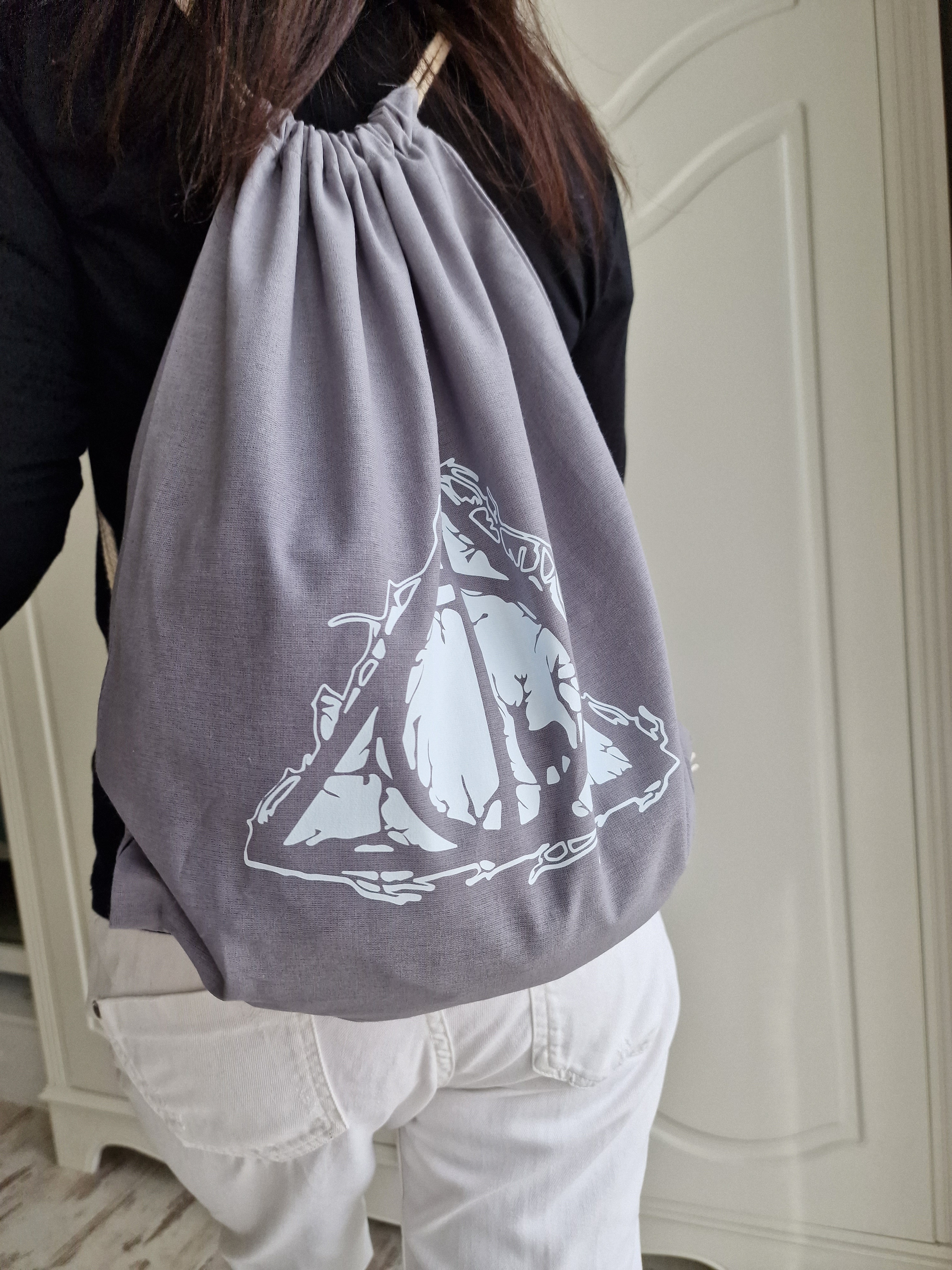Backpack Gray for sports and schools -"Deer" for Potter-head fans