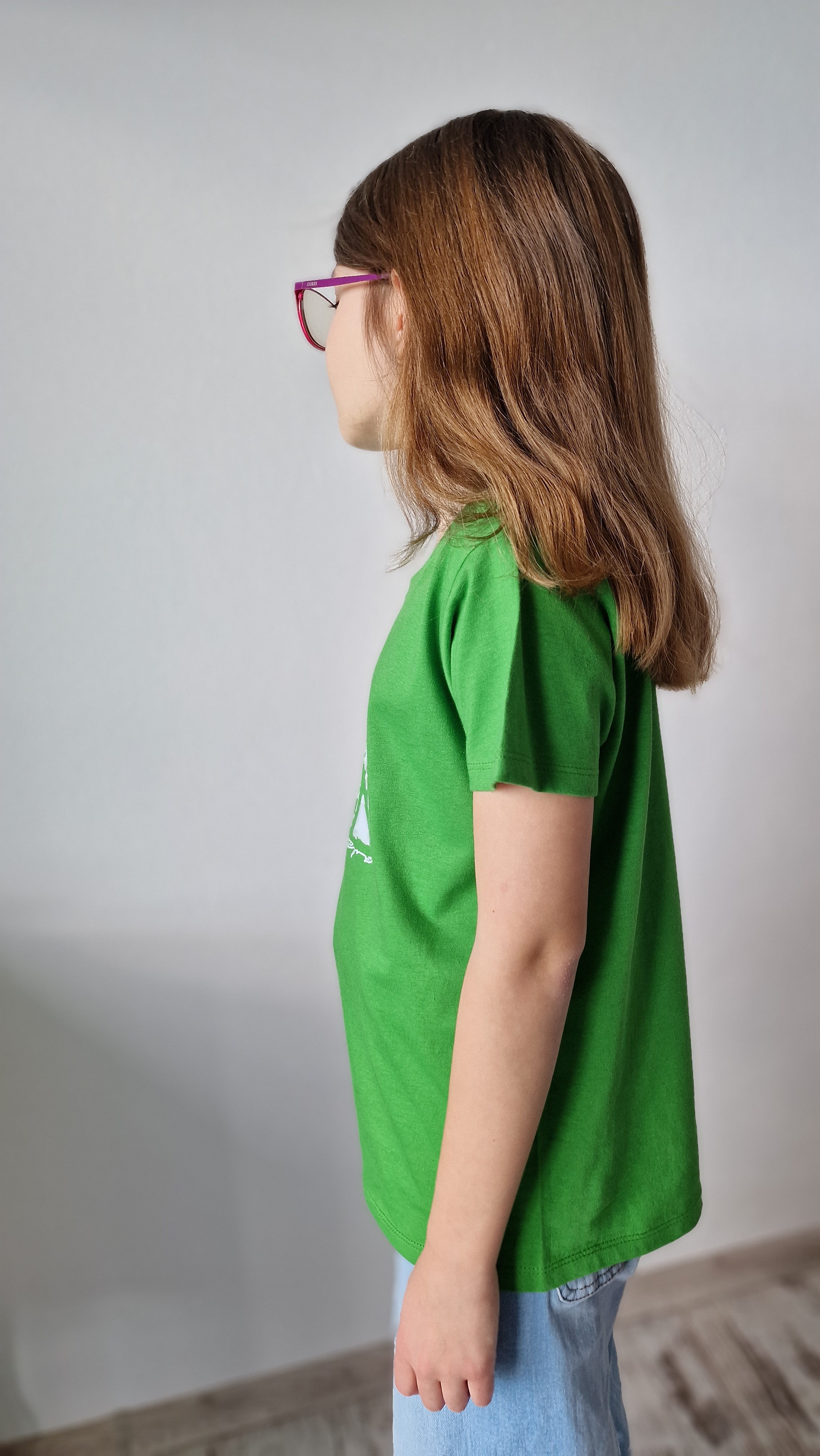 The lush green hue of the t-shirt sets the stage for the mesmerizing deer illustration adorning the front. The graceful silhouette of the deer, with its majestic antlers and ethereal presence, exudes a sense of tranquility and connection to the natural world. Children wearing this t-shirt can embark on imaginary journeys through enchanted forests, where they can encounter mystical creatures and experience the beauty of the wilderness.