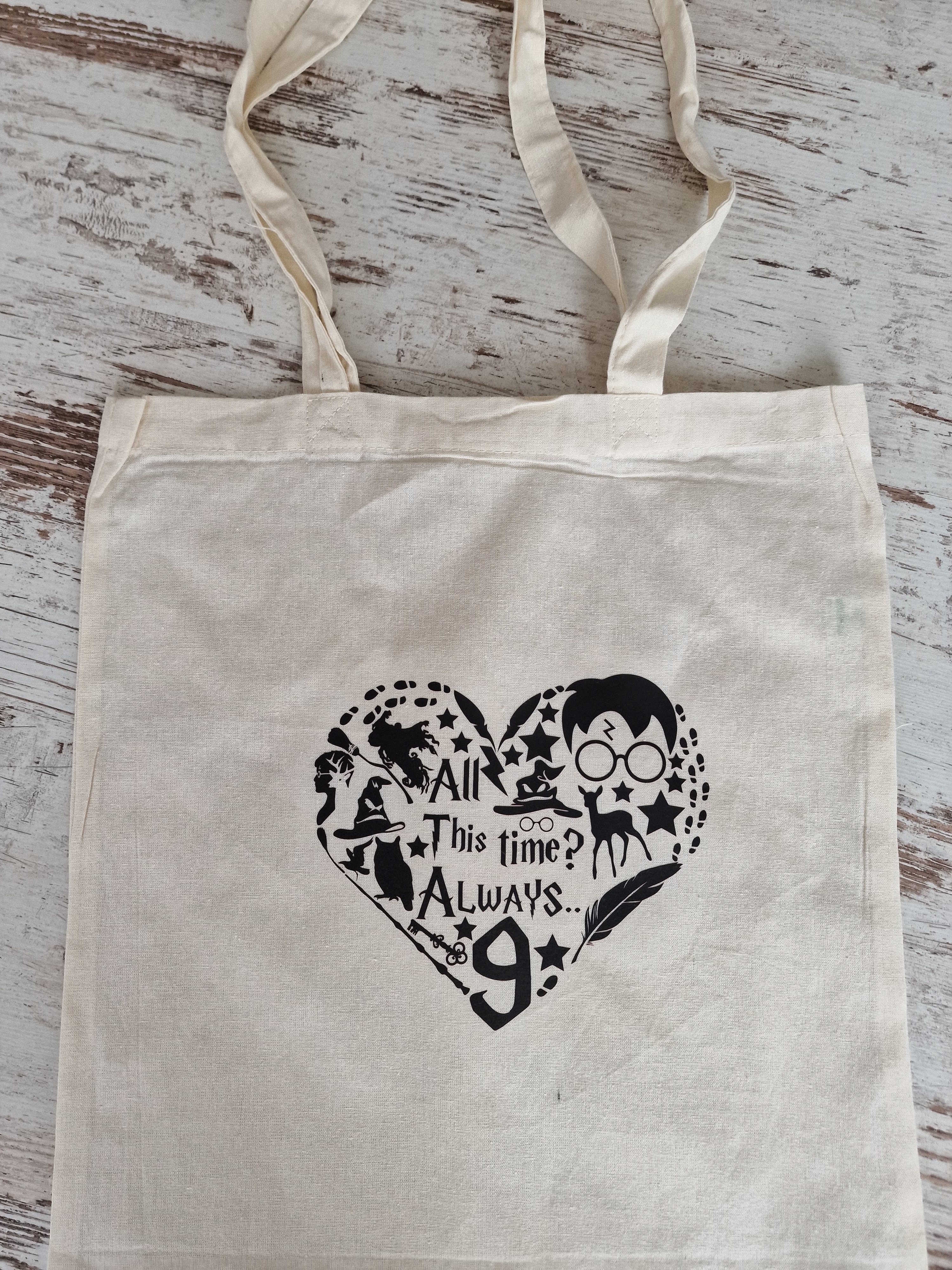 Cotton shopper bag -"All This Time" for Potter-head fans