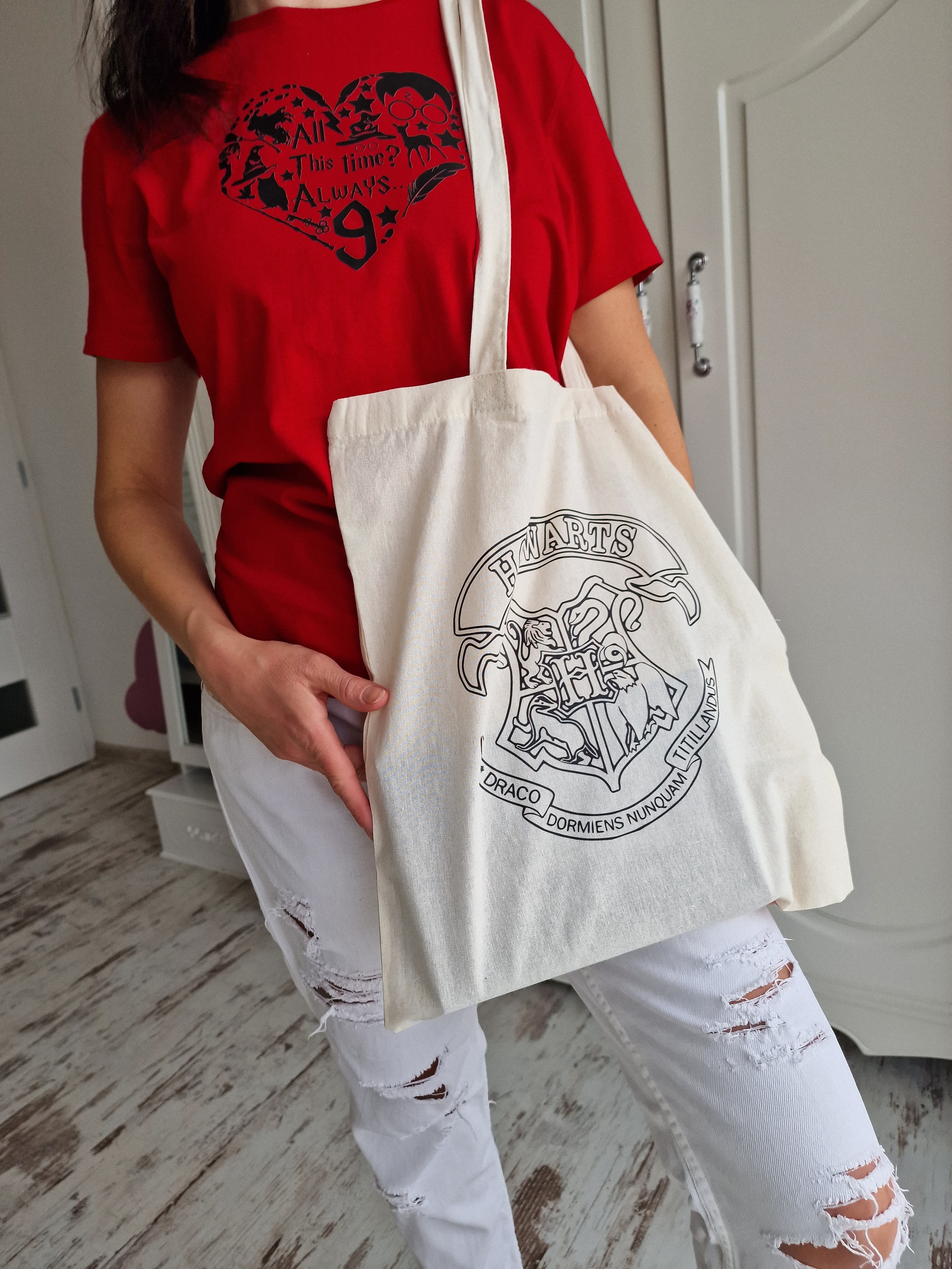 Calling all Potter-head fans! Elevate your style with cotton shopper bags designed especially for those who share a love for all things Harry P.. These bags pay homage to the beloved wizarding world, featuring prints and symbols that celebrate the magic and camaraderie found within the pages enchanting saga.