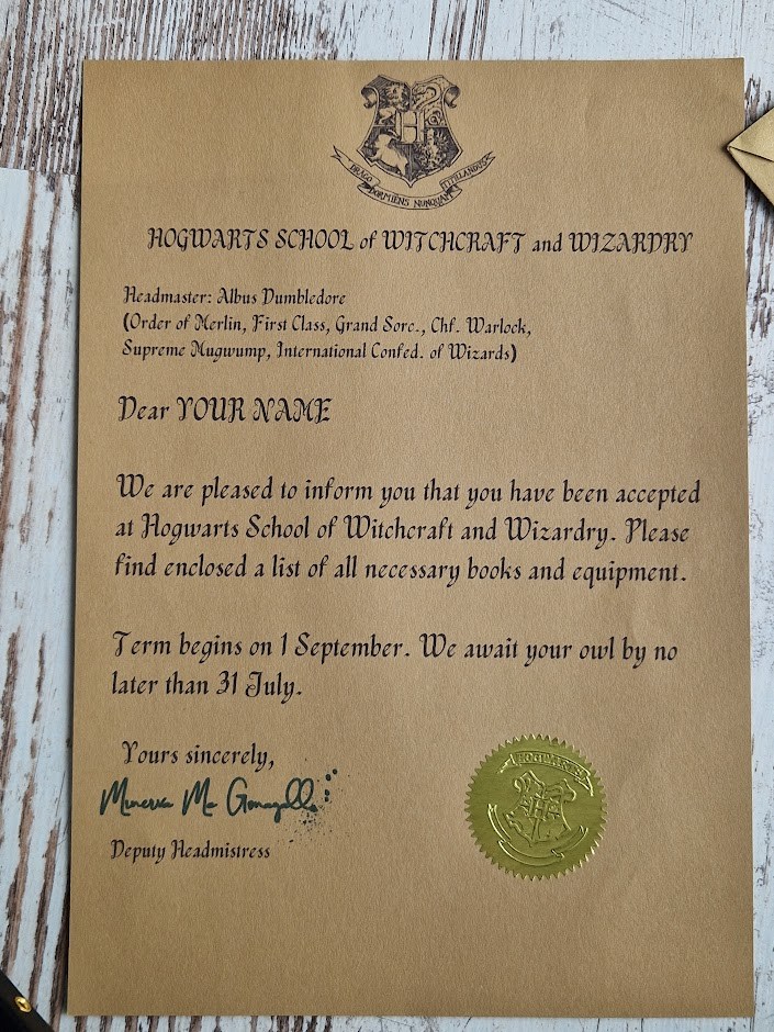 Printouts: Letter of admission to the school of witchcraft - for Potter-head fans