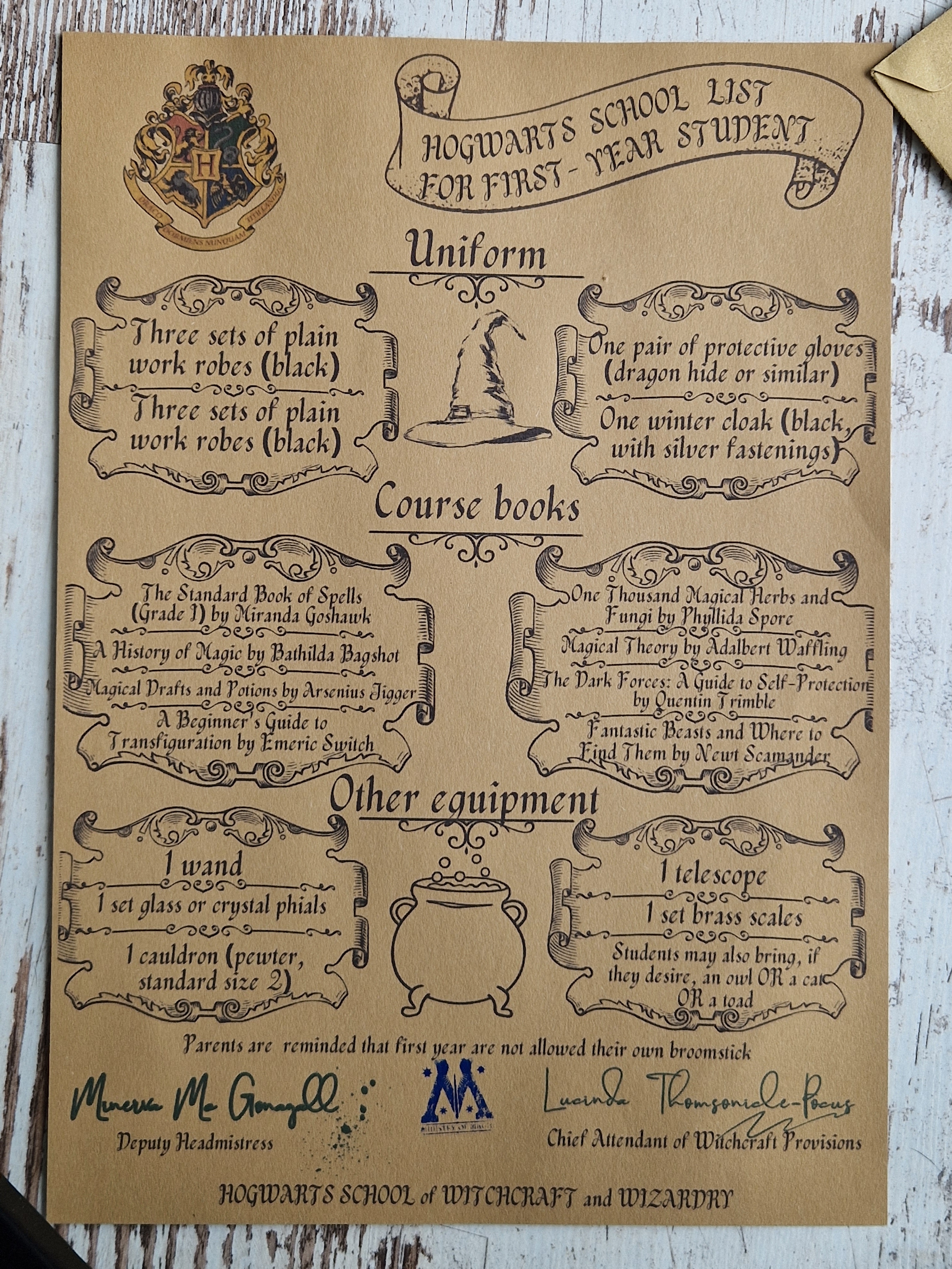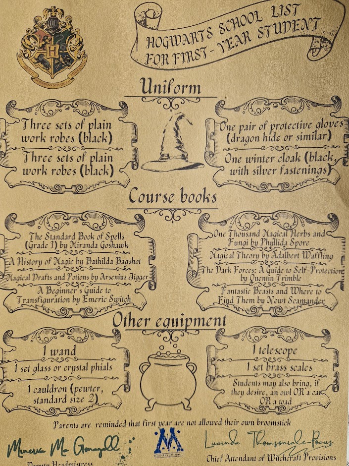 Printouts: List of first-year students of the school of witchcraft - for Potter-head fans