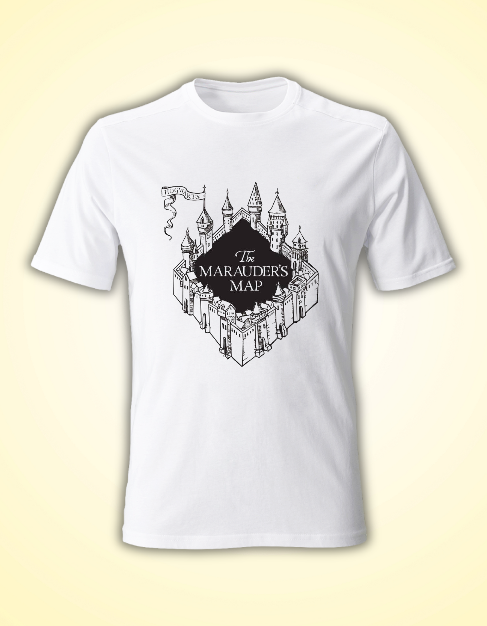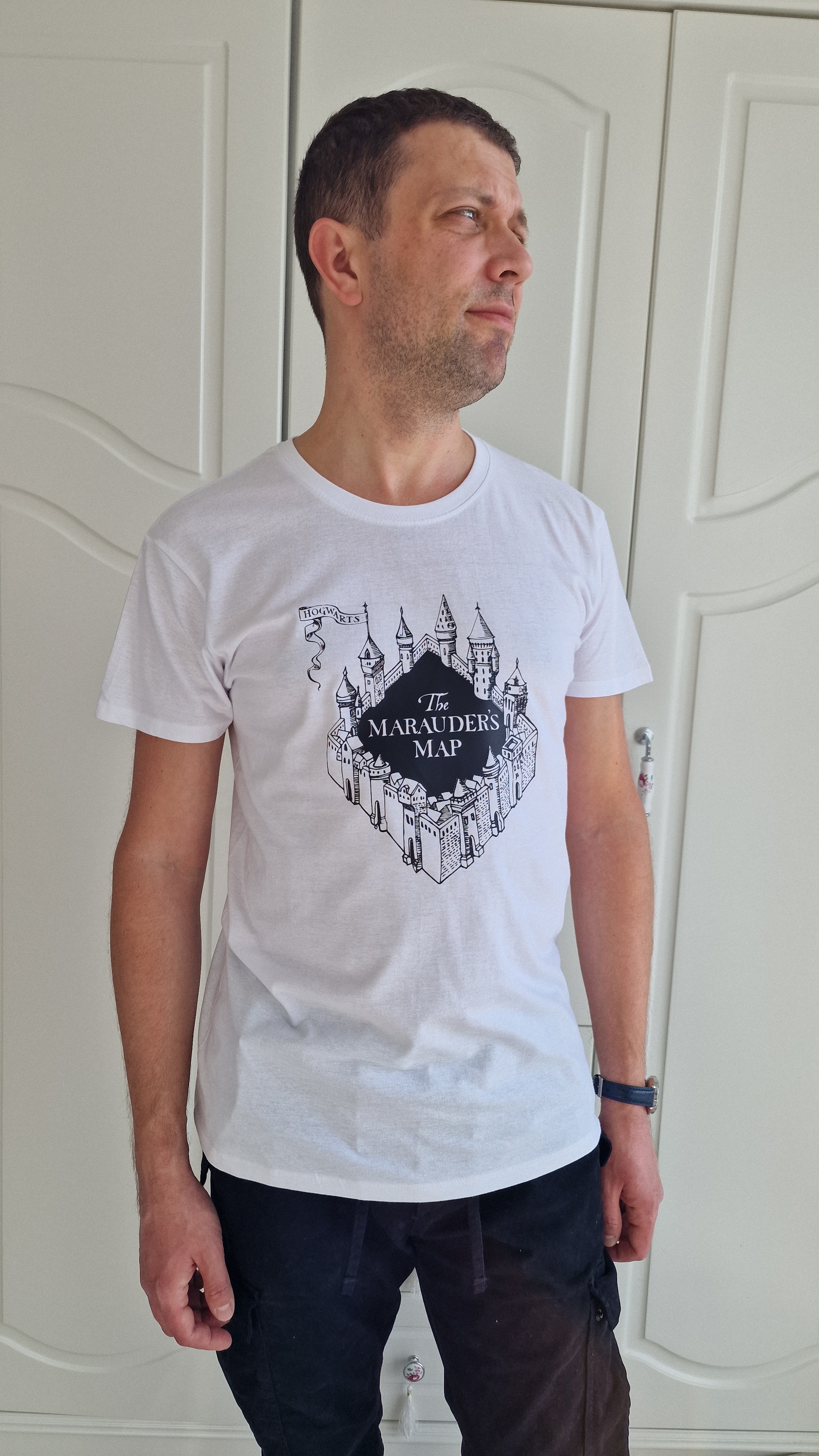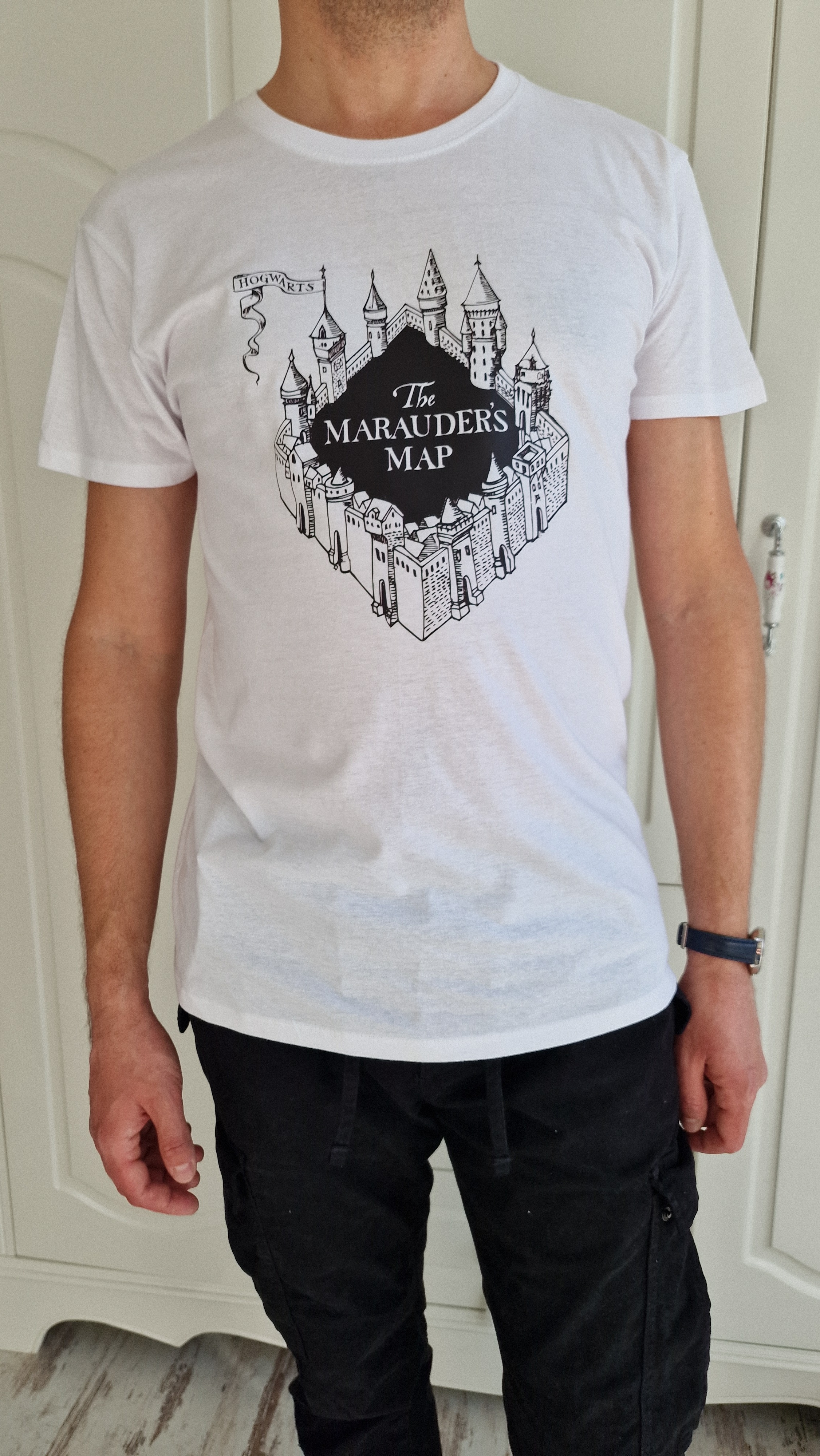 Men's white t-shirt -"Marauder's map", clothing for Potter-head fans