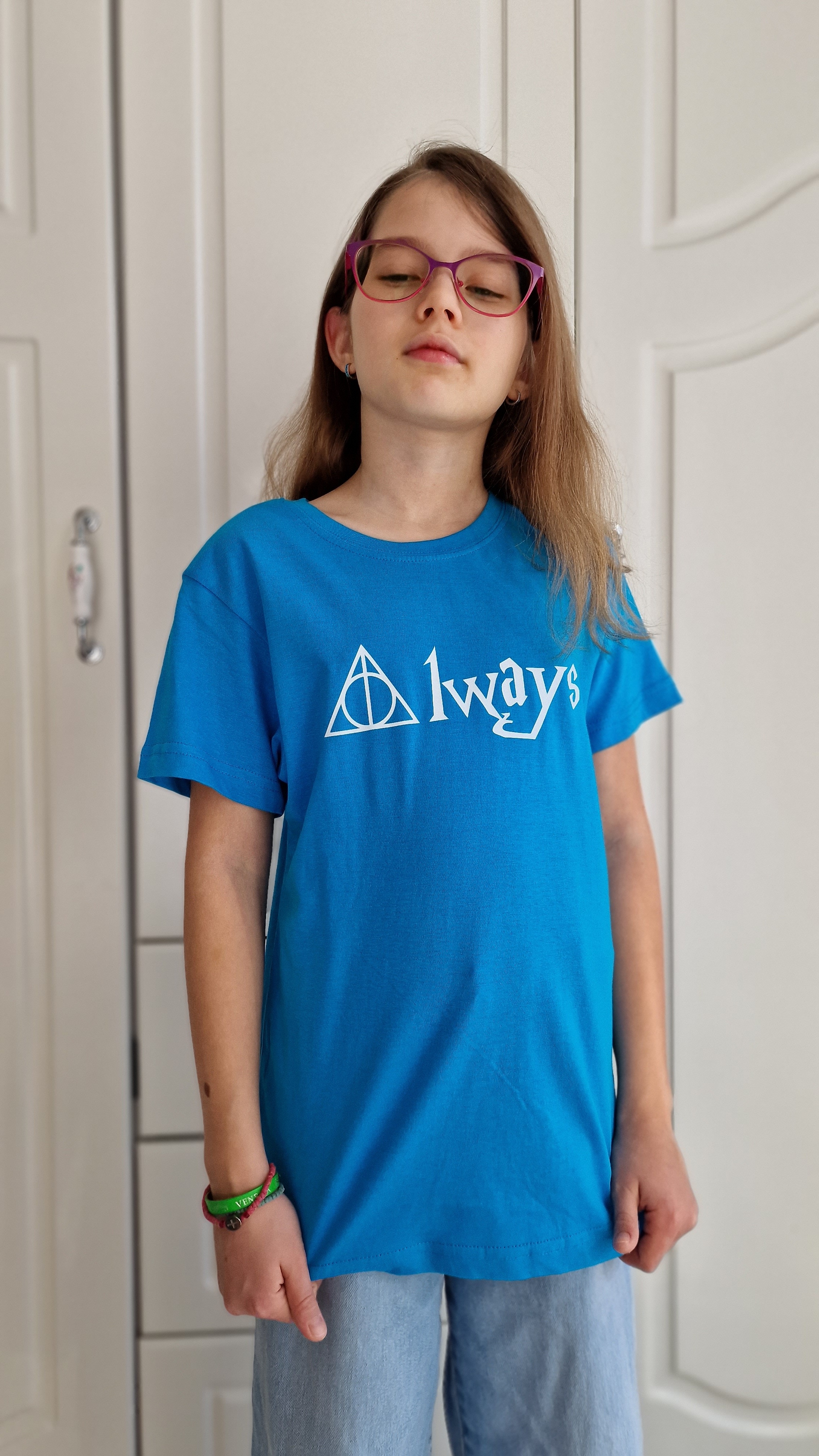 The choice to adorn paired printed t-shirts with the word "Always" reflects a deep connection to the themes of love, friendship, and sacrifice that permeate the Potter narrative.