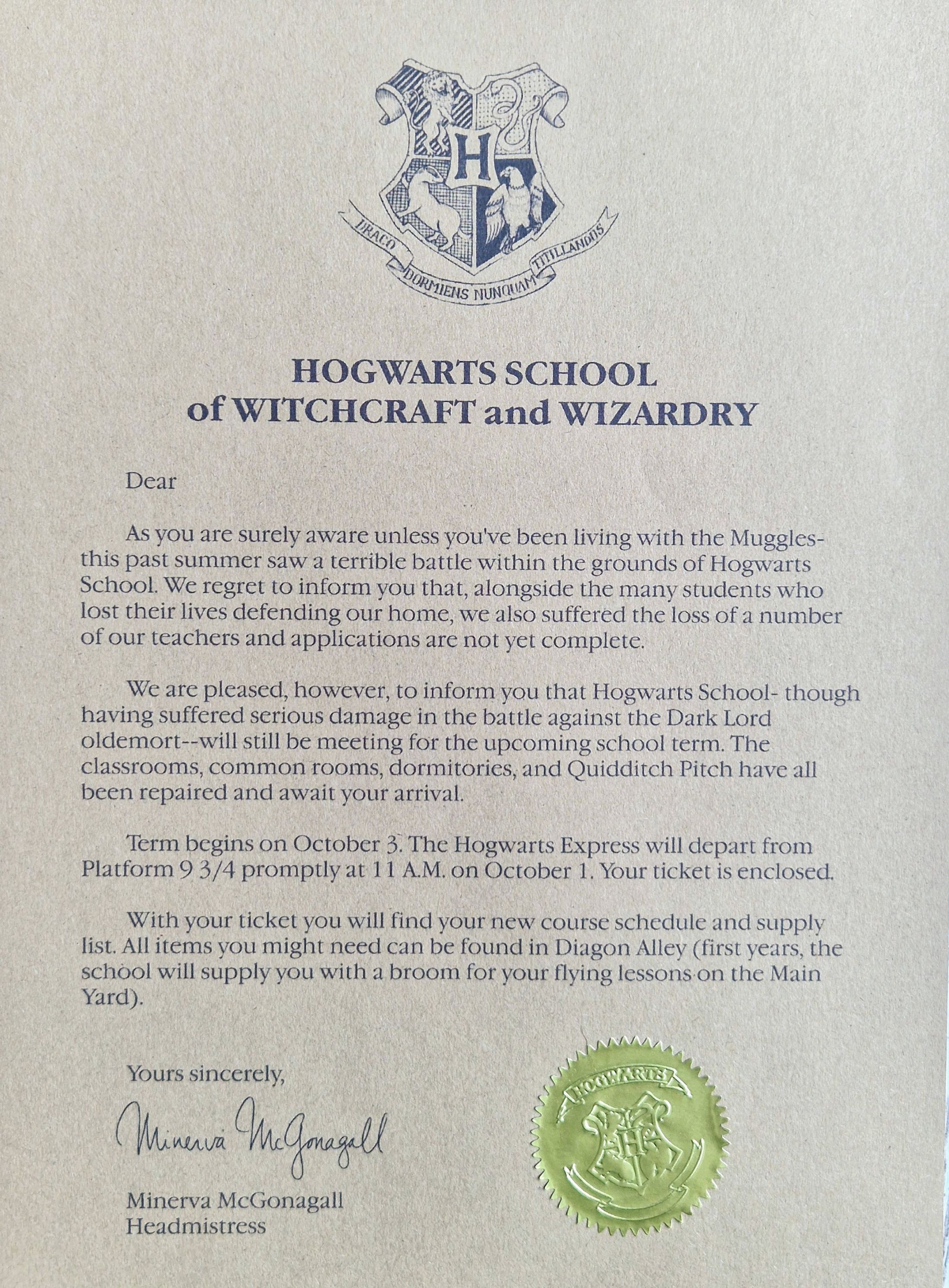 Printouts: Letter about the New Academic Year at the School of Wizards