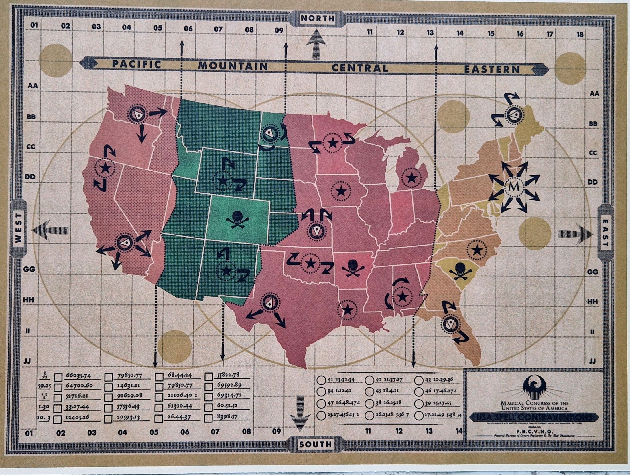 Printouts: Map of the USA with registration of magical offenses
