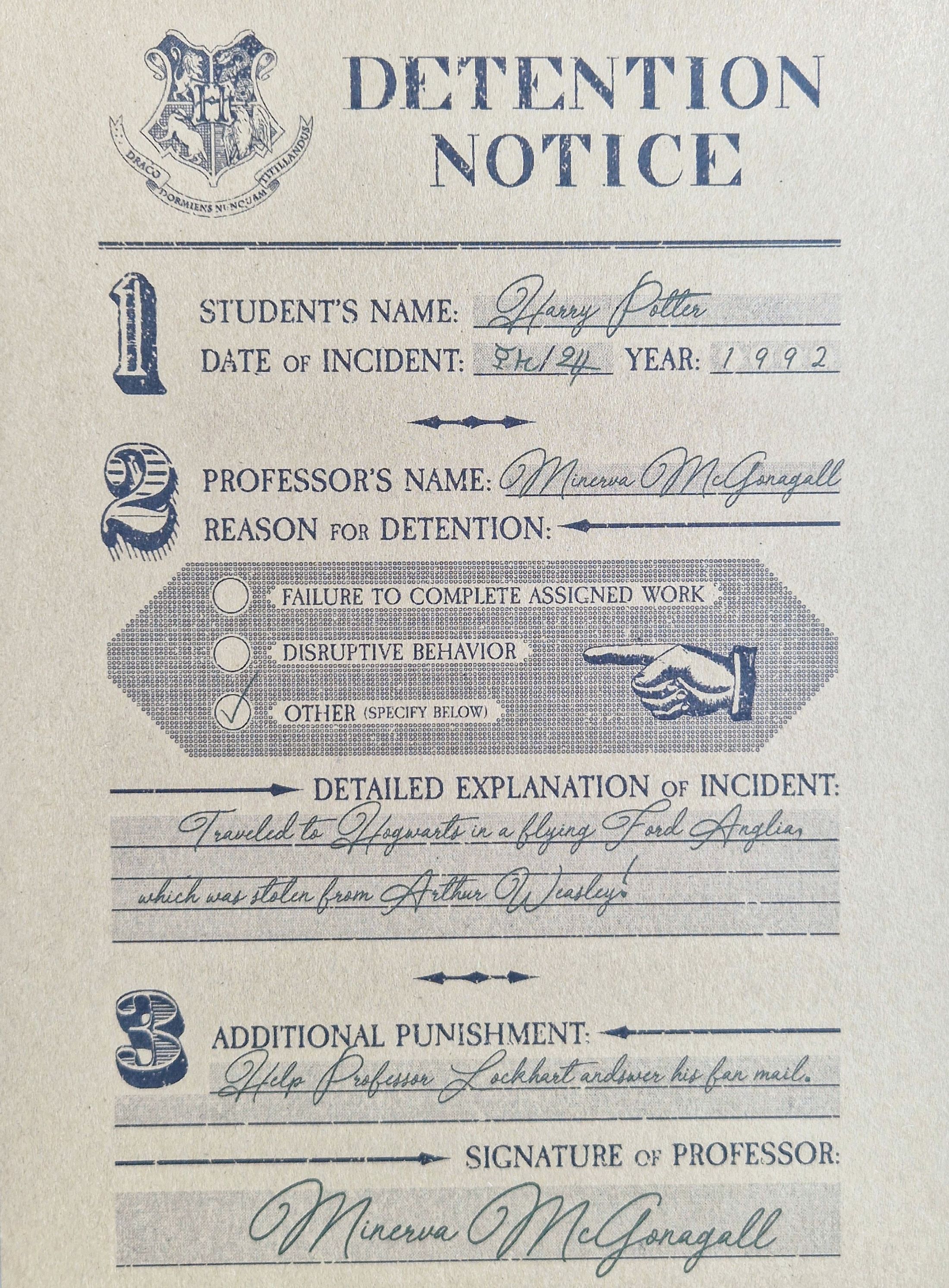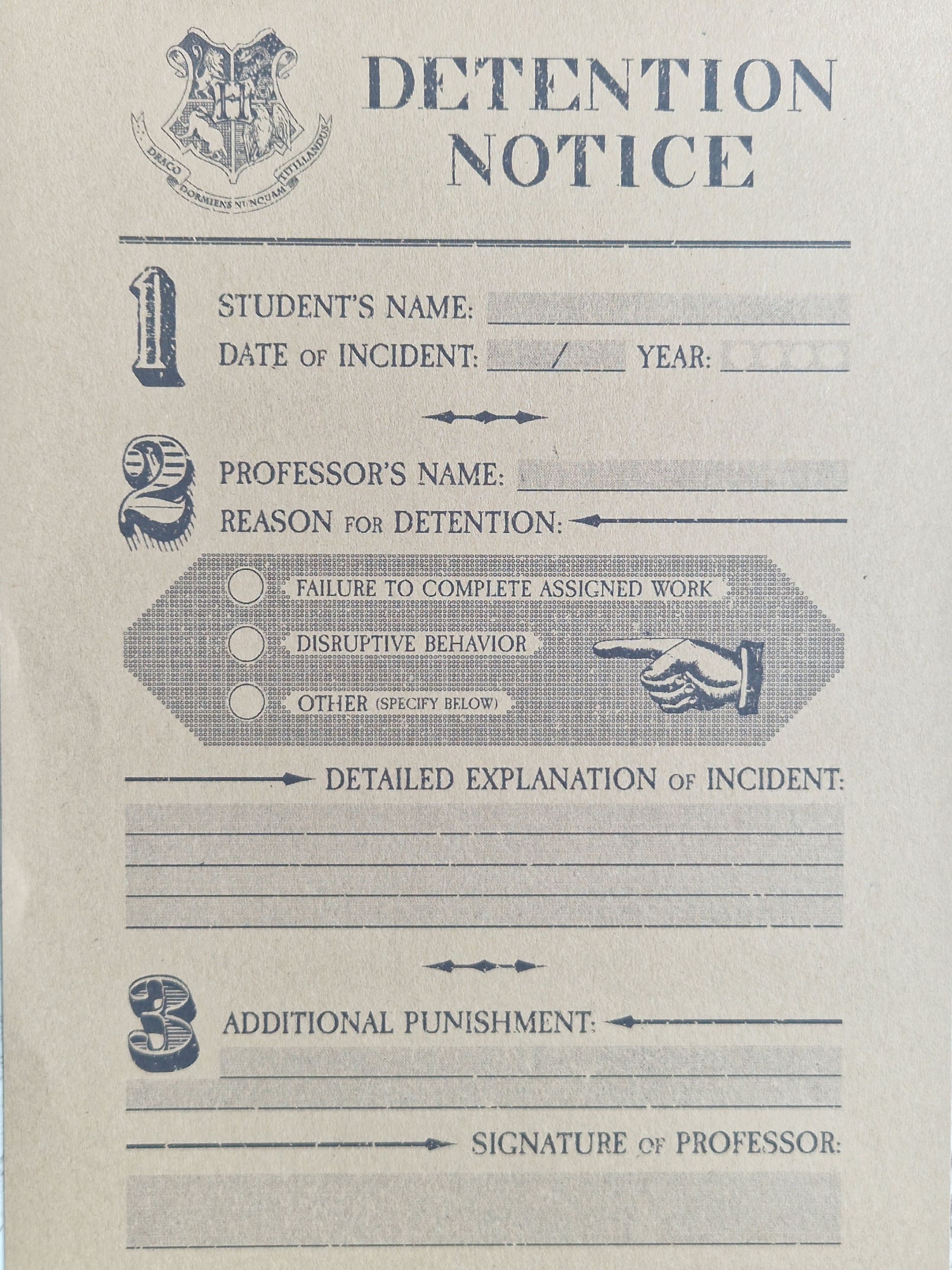 Printouts: Detention notice - for Potter-head fans