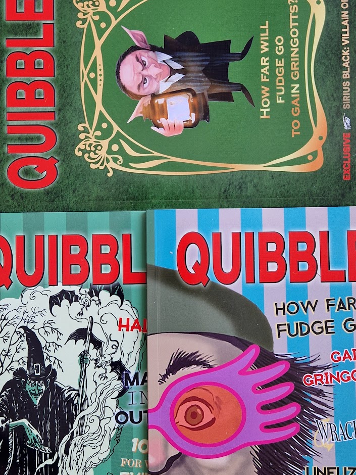 Journals-sketchbooks: Quibbler, Quibbler: How Far will Fudge go to Gain Gringotts, Quibbler: All Hallows EVE!