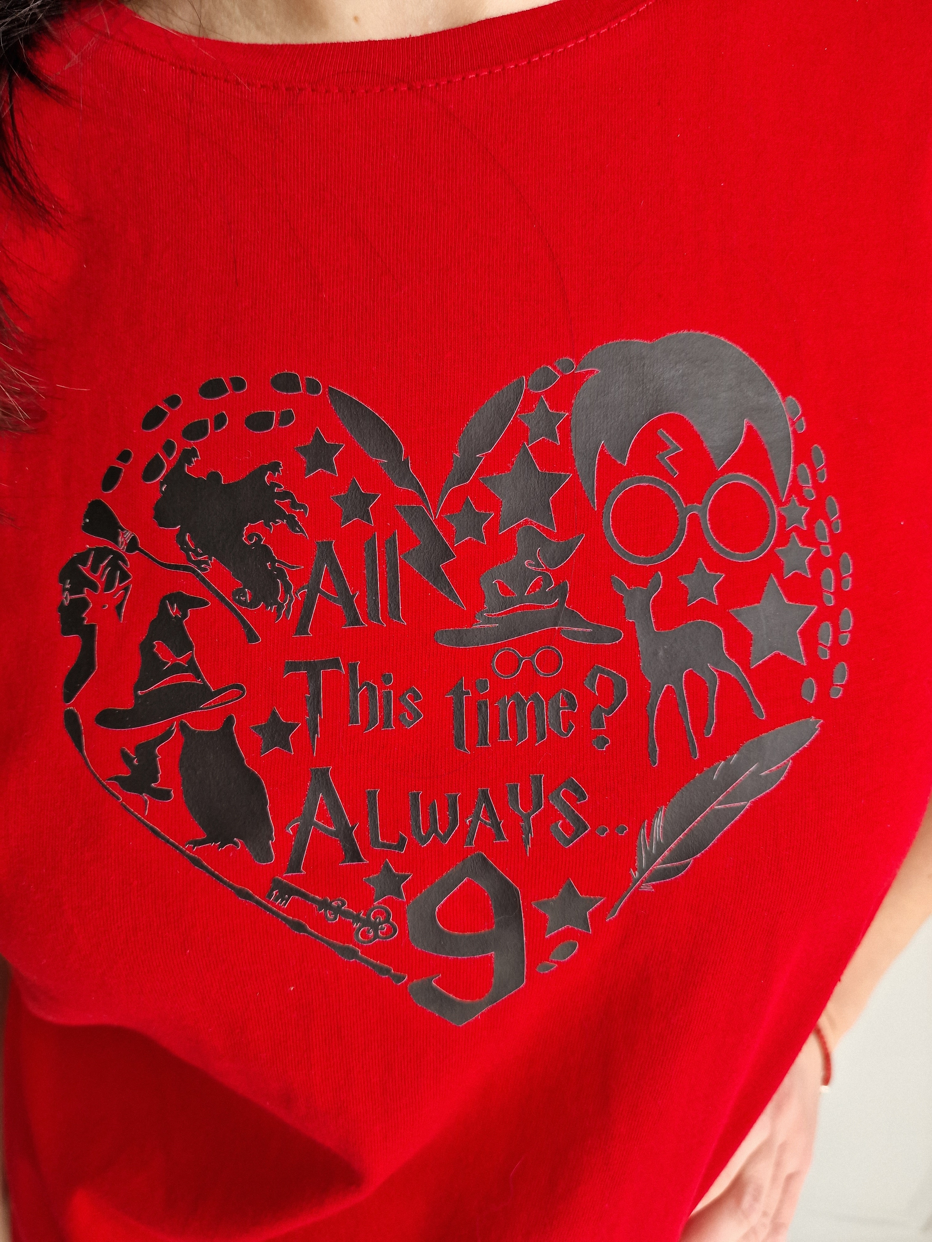 T-shirt Unisex red (women and girls) -"All this time", clothing for Potter-head fans