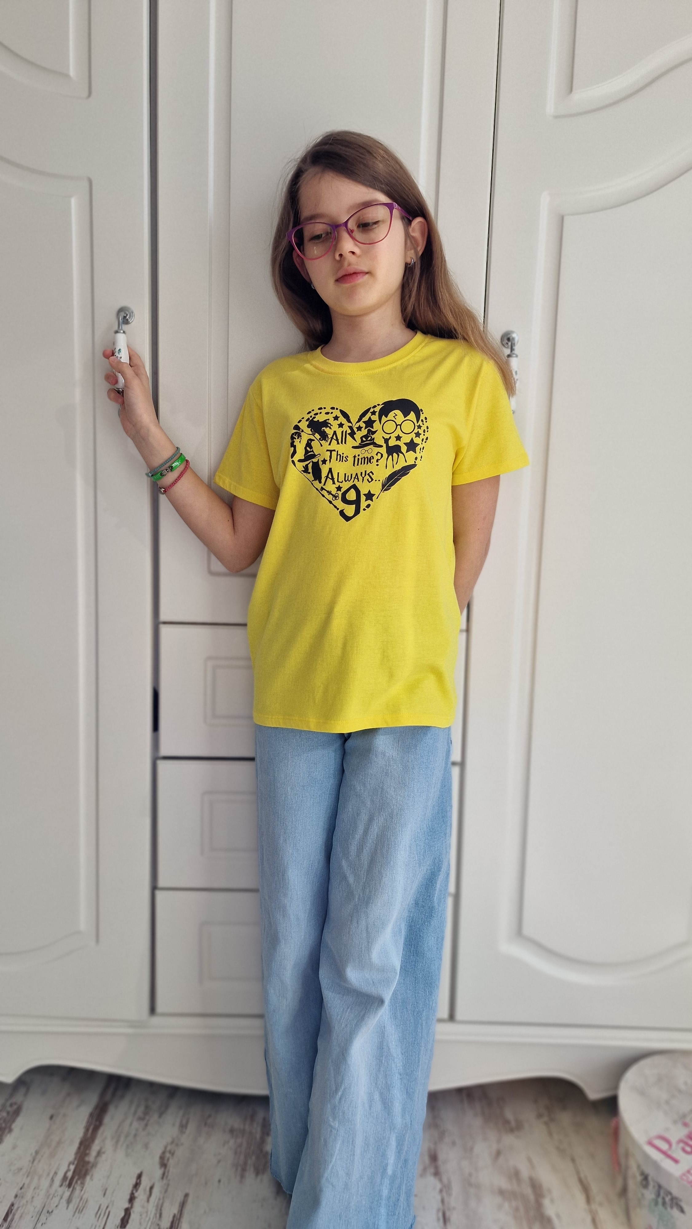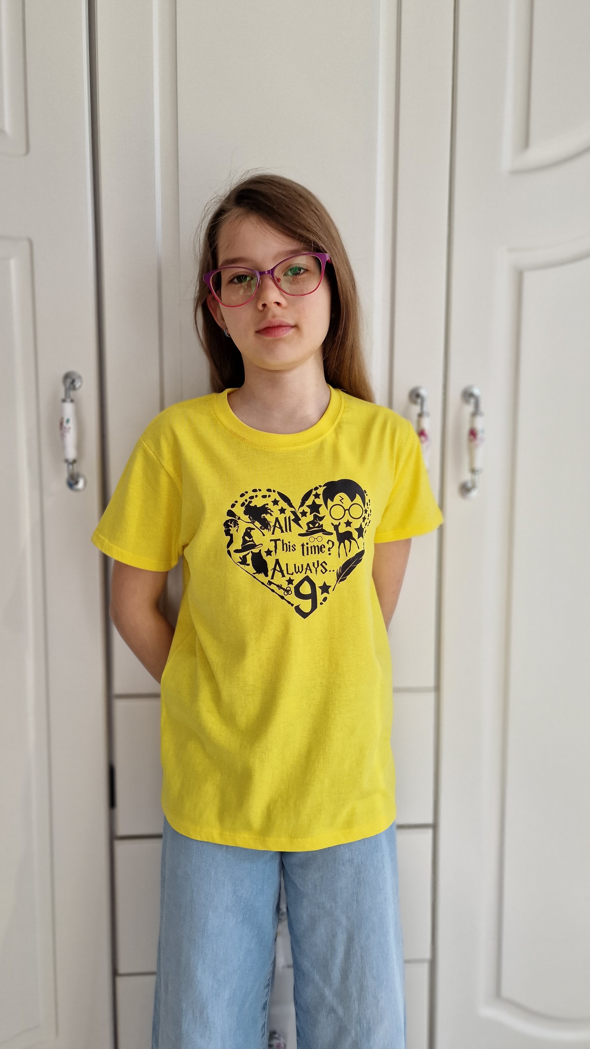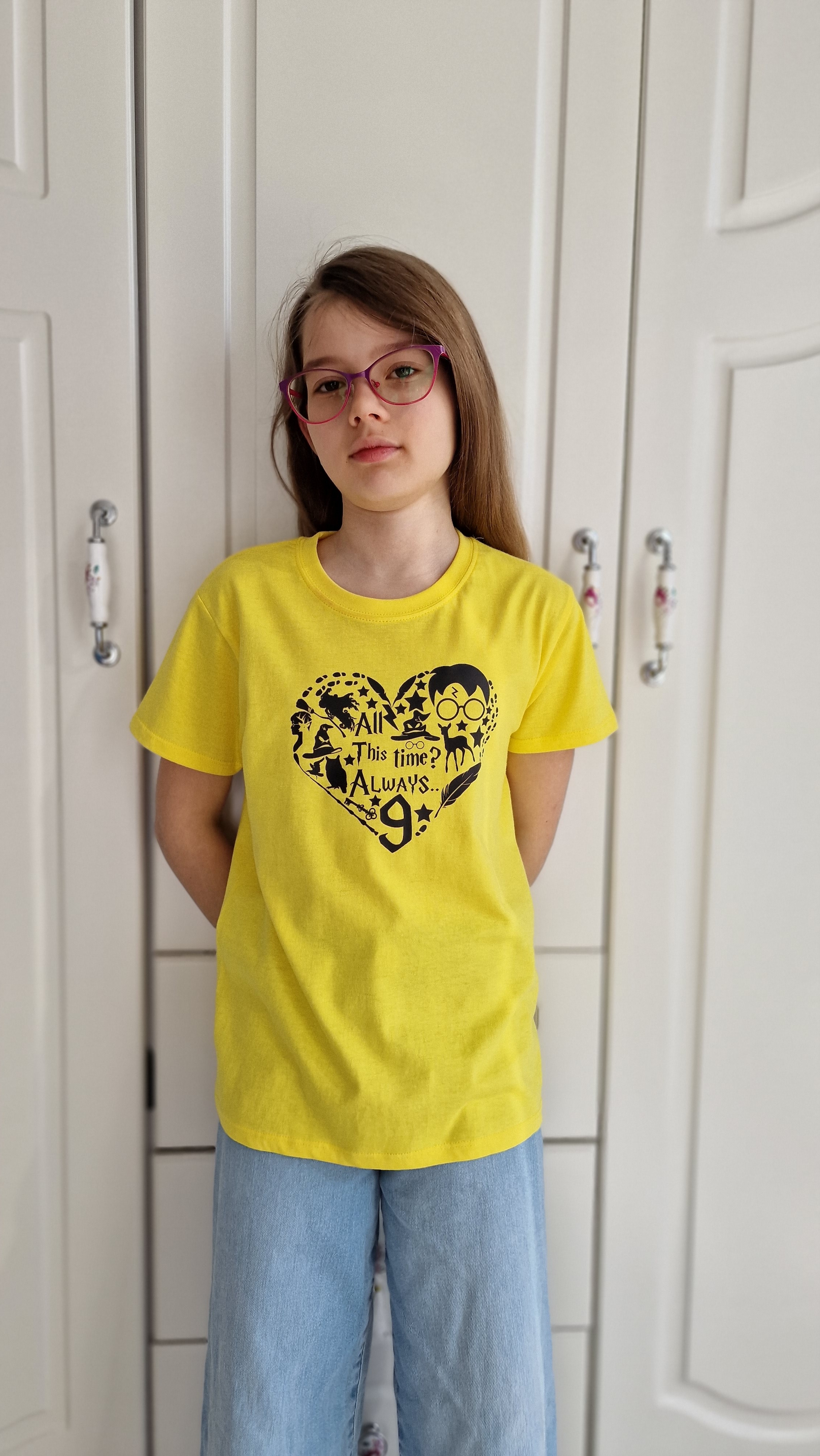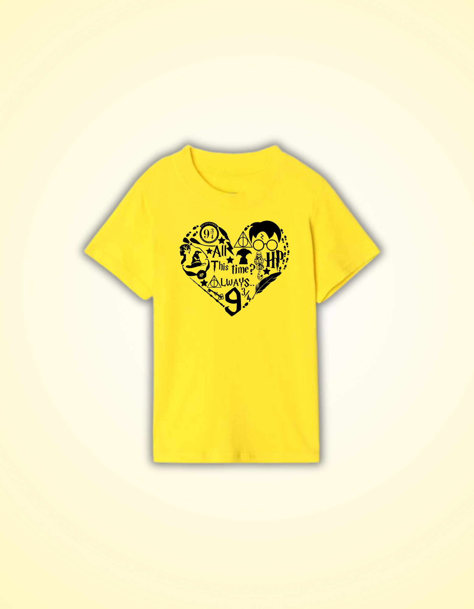 Childrens yellow t-shirt "Harry heart", clothing for Potter-head fans